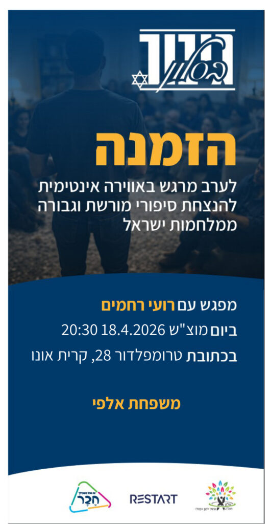 גיבור בסלון2026 | קרית אונו | אלפי | רועי רחמים | 18.4מאת מיכל אקשטיין שרון / 5 במרץ 2026 📍 מיקום האירוע: טרומפלדור 28, קרית אונו📅 תאריך: 18/04/2026⏰ שעה: 20:30האירוע מלא. לא ניתן להירשם.
